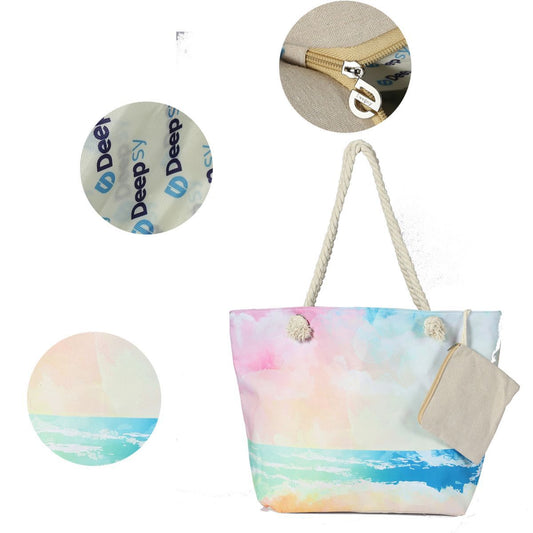 Canvas Beach Tote Bag For Women Waterproof Large Travel Beach Bags With Zipper Reusable Grocery Shopping Bags