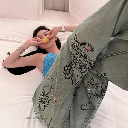 Diamond Hello Kitty Graffiti Women Jeans