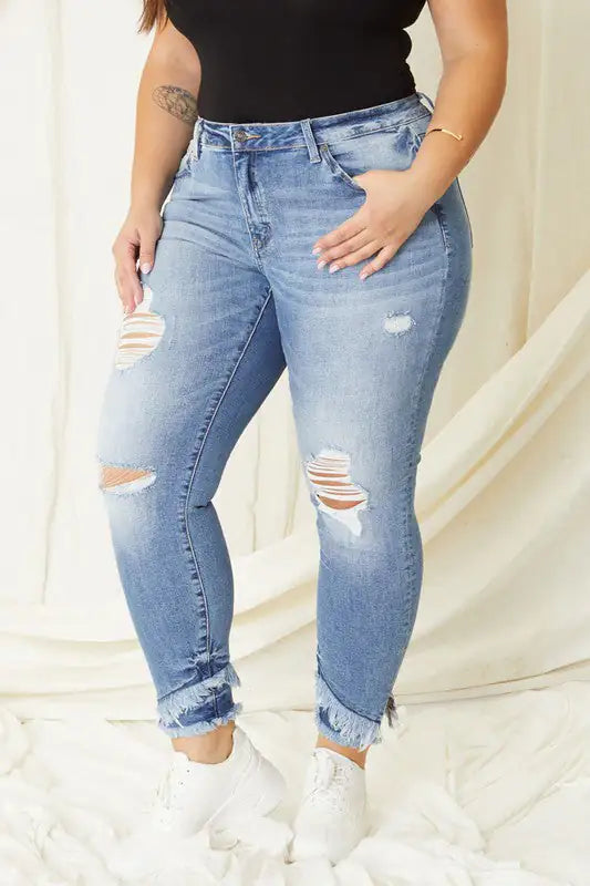 Kan Can Plus Mid Rise Ankle Skinny Jeans