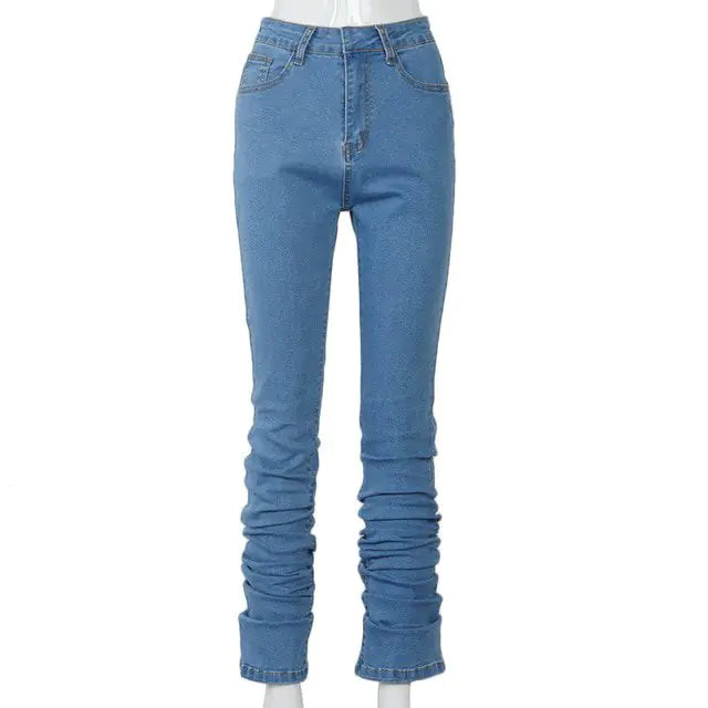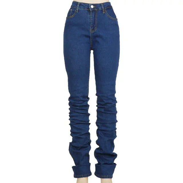 Make a statement with the fashion-forward design of our High Waist Stacked Blue Denim Skinny Jeans. The unique stacked detailing at the ankles creates a stylish stacked effect, adding a contemporary edge to your outfit. Pair them with your favorite heels or sneakers for a chic and trendy look that effortlessly transitions from day to night.