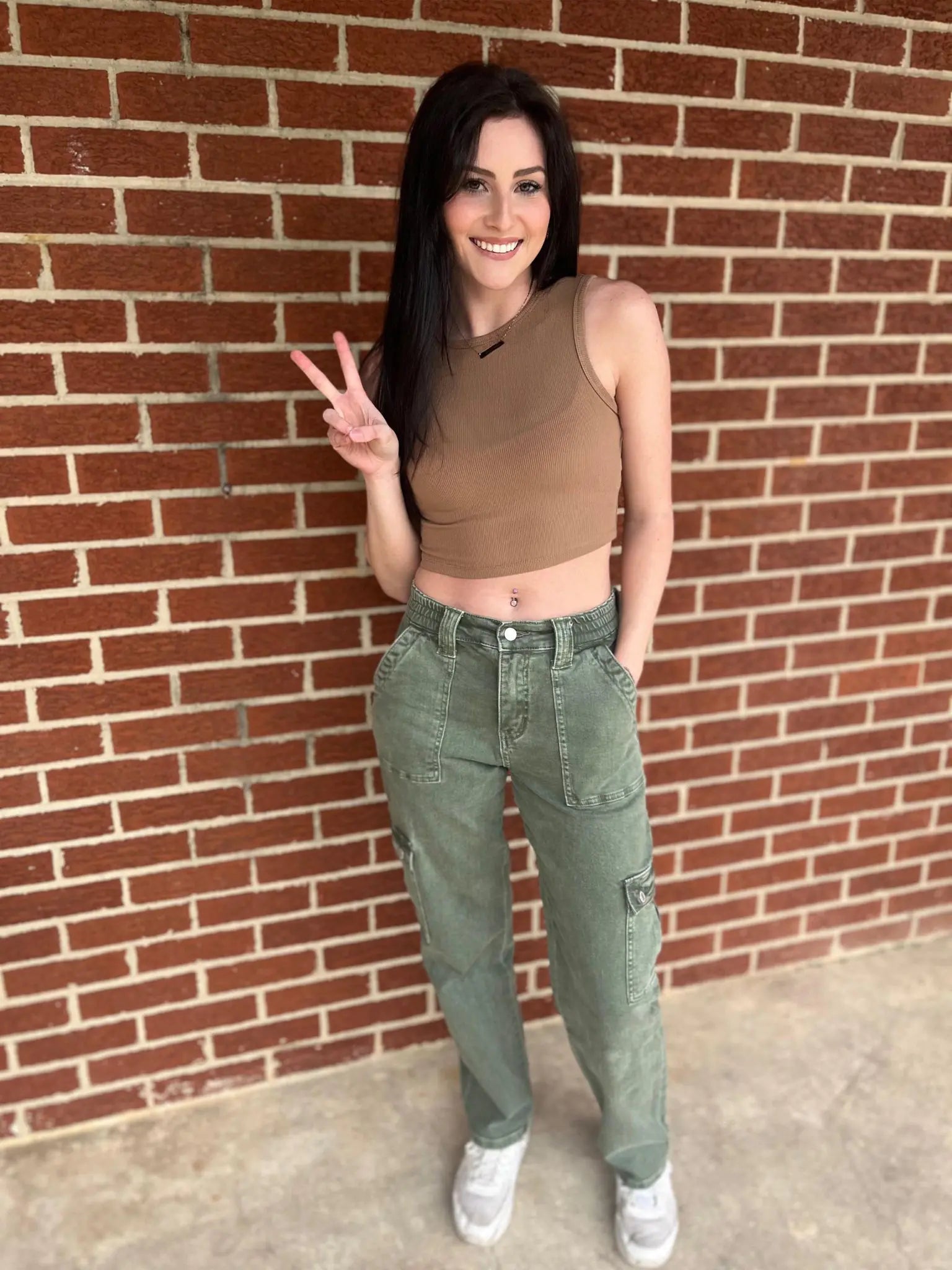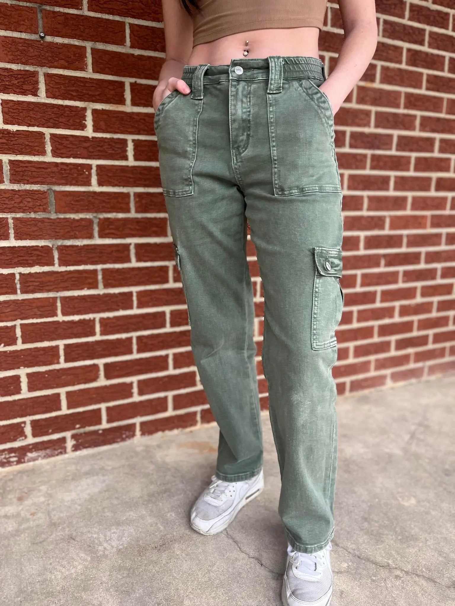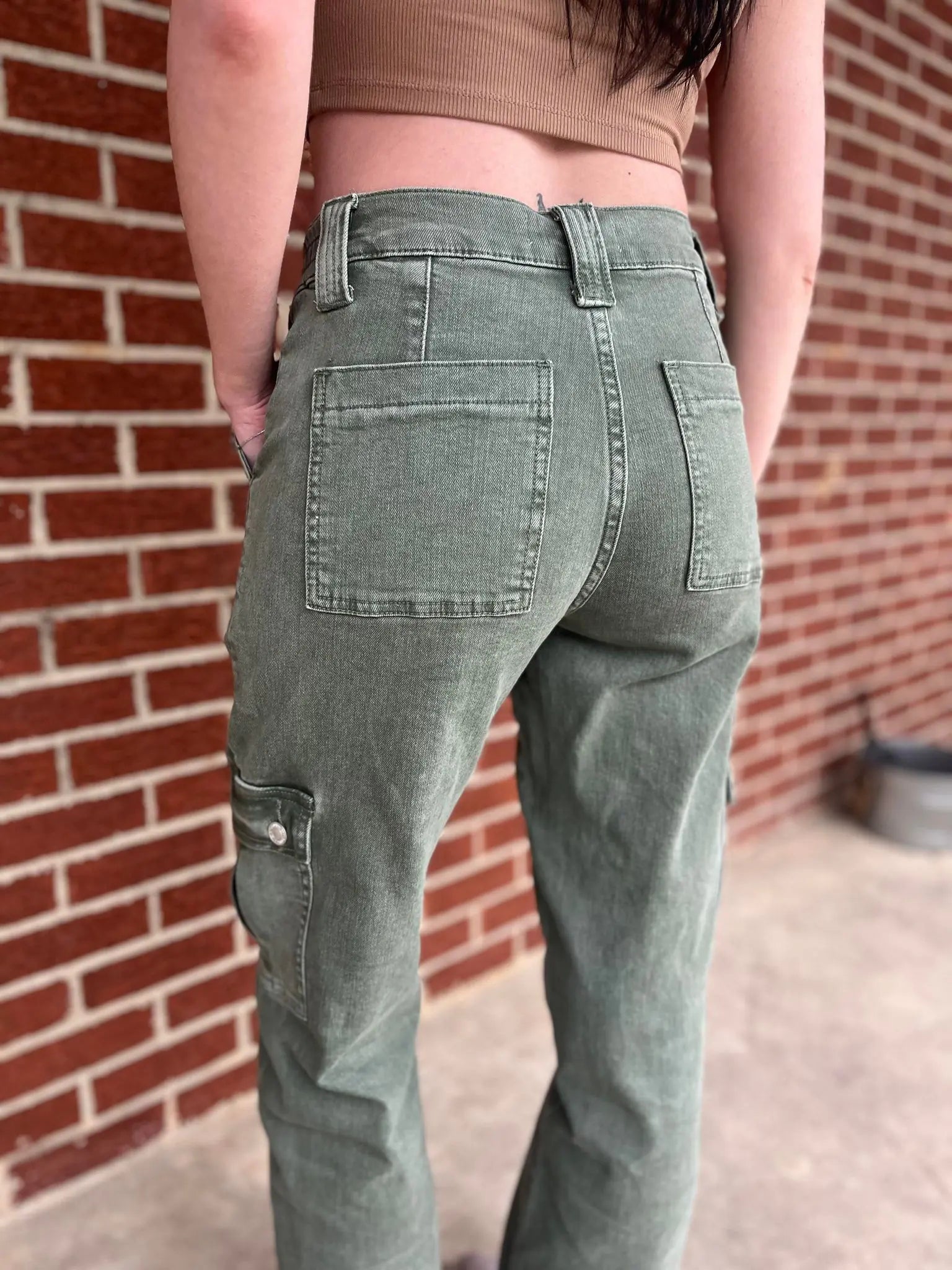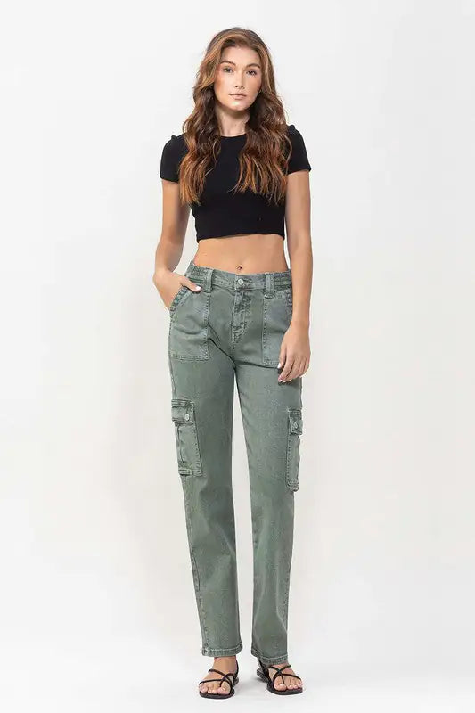 MID RISE STRAIGHT WITH CARGO JEANS POCKET DETAIL